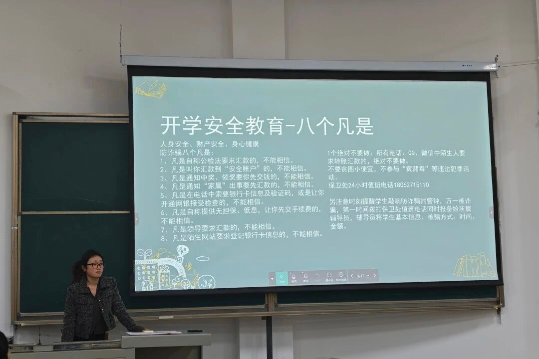 在反诈防骗专题中,辅导员细致讲解“八个凡是”防骗口诀,用通俗的话语拆解常见骗局。一遍遍叮嘱大家,面对电话、QQ、微信里陌生人的转账要求,一定要果断拒绝;别因贪图小便宜掉入陷阱,更要远离“黄赌毒”等违法犯罪活动,守好自己的“钱袋子”,护好青春的人生路。