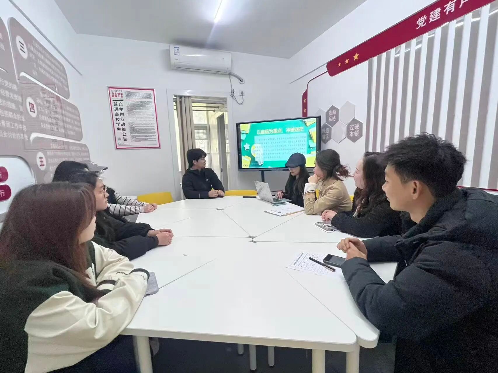 葛清源老师重点提醒本学期学业进度、材料提交、日常管理与安全事项等相关问题,叮嘱同学们稳扎稳打、有序推进毕业流程。秦晶晶老师聚焦升学备考、求职竞争带来的心理压力问题,给同学们分享了一些情绪调节、压力管理与心态建设的方法,引导大家科学调适,从容应对关键阶段。徐冬莹老师结合毕业生的专业特点,对他们的毕业创作规范、选题打磨、内容呈现与学业收尾提出专业建议,助力同学们高质量完成毕业成果。滕锐老师围绕就业方向、就业政策、求职技巧等方向进行细致指导。鼓励同学们主动出击、理性定位、积极就业。
