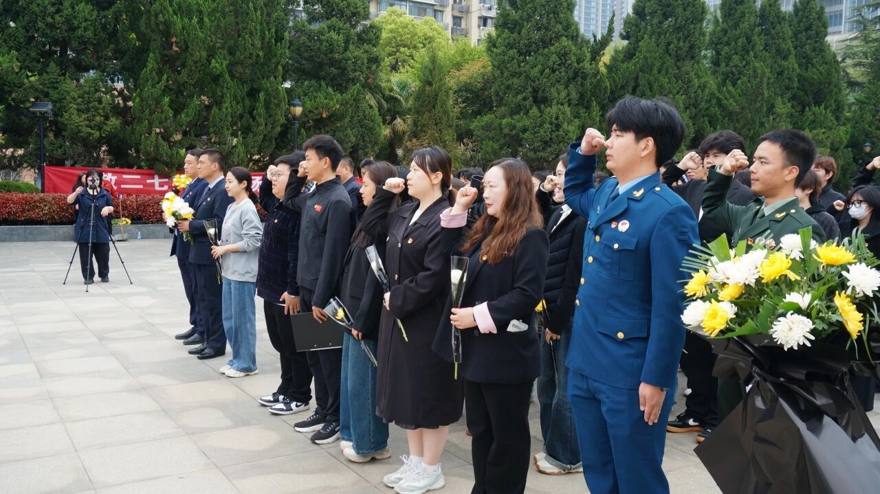 学生代表刘盛淼同学发言表示:我们要铭记峥嵘岁月、守护当下的和平安宁,传承和弘扬红色精神,以昂扬姿态攻坚克难,为全面建设社会主义现代化国家、实现中华民族伟大复兴而接续奋斗。