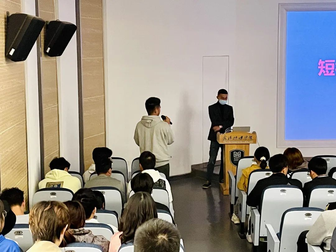 在会上,安华飞老师给同学们讲解了短视频的趋势,他提到:“短视频app的兴起让内容创作的门槛得到了进一步的降低;从长远来看,优质的内容将成为短视频的核心竞争力”。