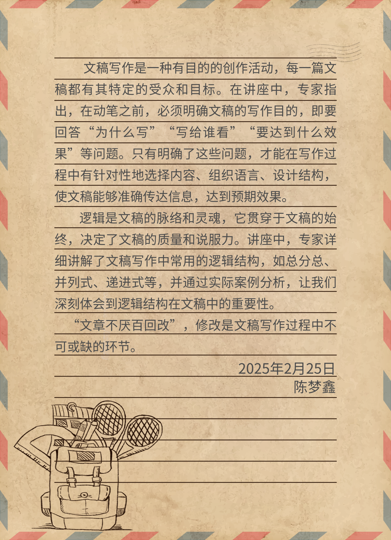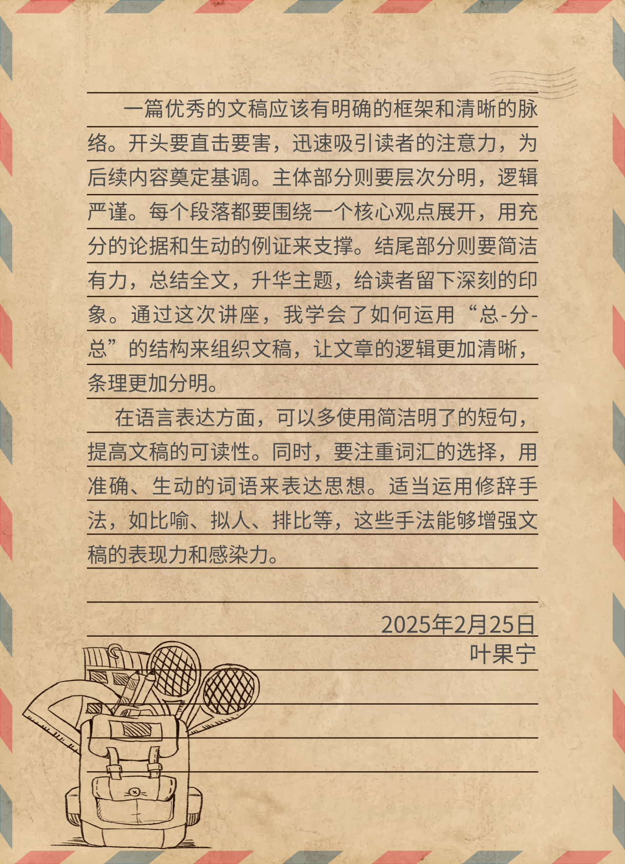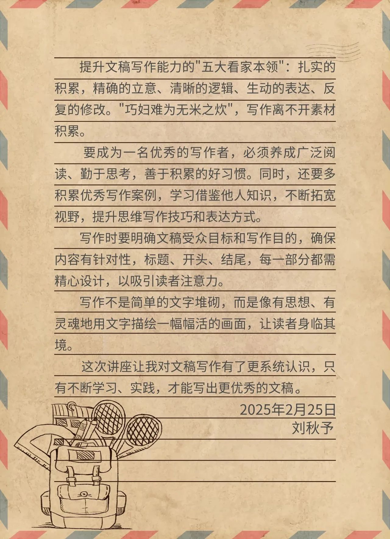 听了讲座,24级新小传们对文稿写作有了全新且深刻的认知,内心也满是收获后的充实与感慨。让我们来听听他们怎么说: