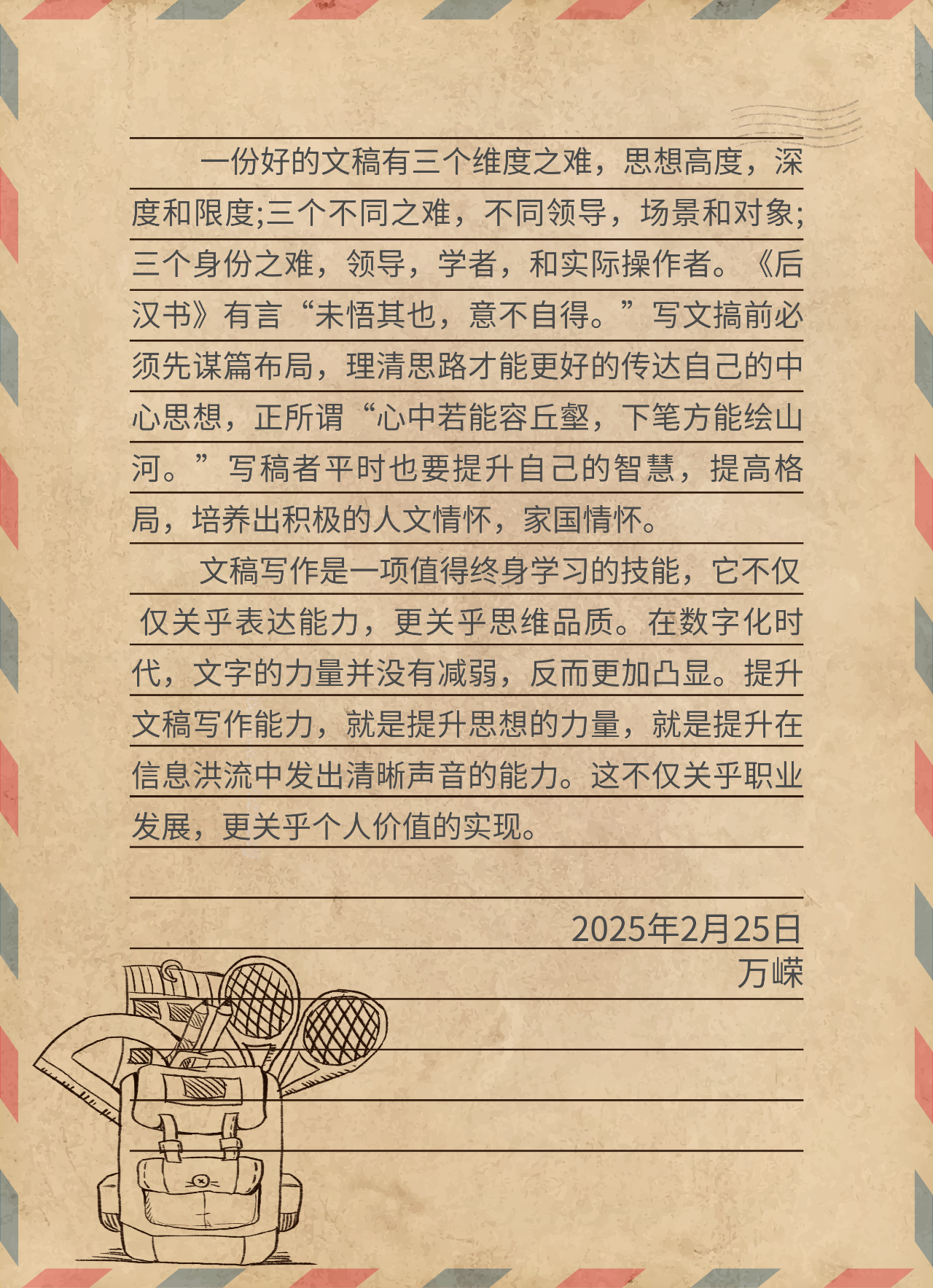 冰冷的算法或许能生成看似通顺的文稿,但却无法复刻人类独有的思想深度、情感温度与对复杂语境的精准把握。文稿创作绝非简单的文字堆砌,而是创作者学识、阅历、感悟的结晶,是饱含生命力的表达,这是人工智能难以企及的。