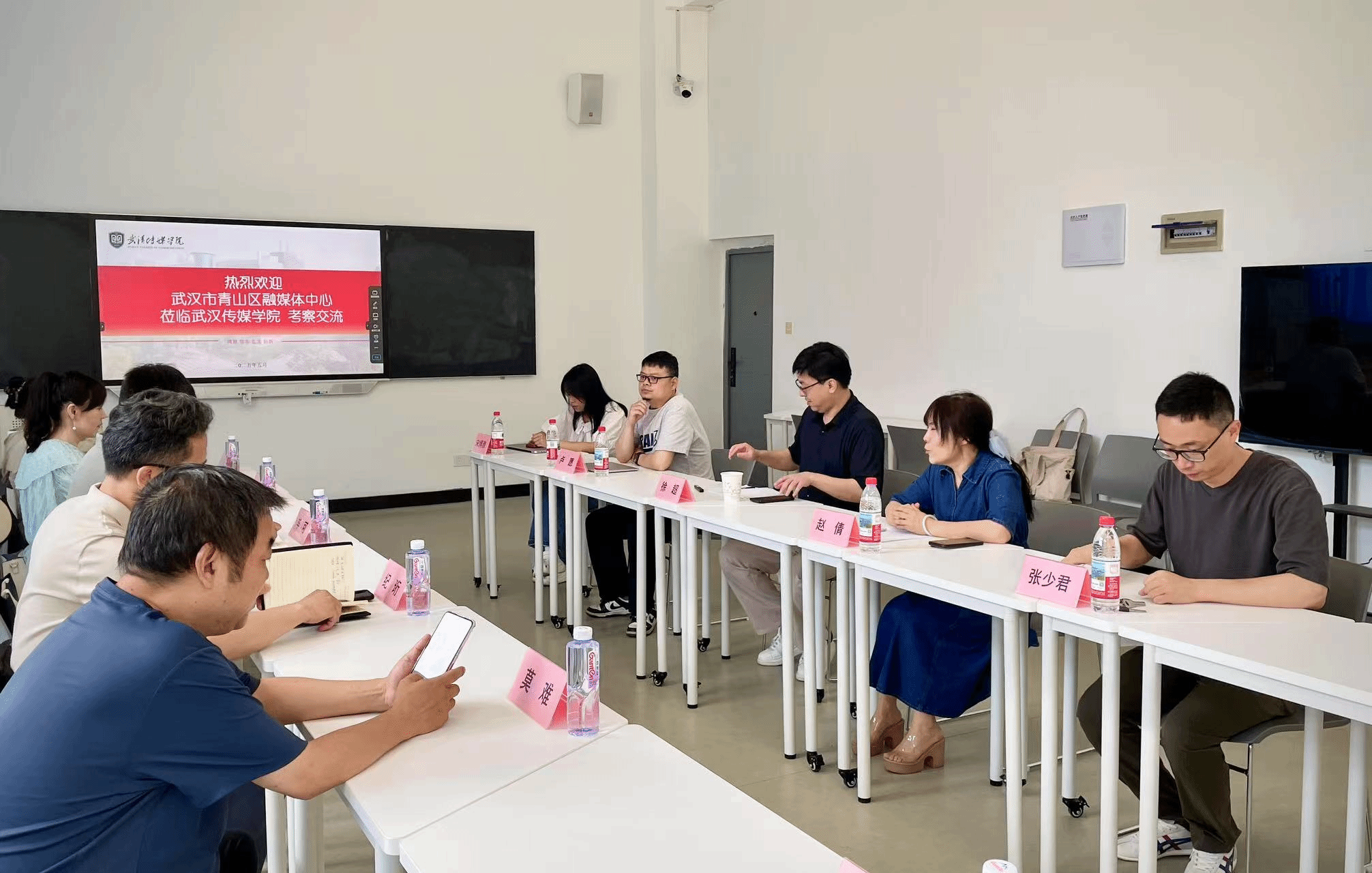 为深化校地合作、推动基层宣传工作创新发展,5 月 21 日,武汉市青山区融媒体中心主任纪珩率副主任莫难、网宣科负责人毕可、舆情科科长章岚,以及“美丽青山”微信公众号及视频号运营编辑杜雅康、刘佳一行,莅临我院开展合作交流座谈会。william威廉中文院长赵倩、副院长张少君、网络与新媒体系主任徐超、广告系主任杜溪、广播电视学系主任卢愿、传播系主任宋博雅等相关负责人出席会议,双方围绕社区宣传新模式构建、校地协同育人机制等议题展开深入研讨。