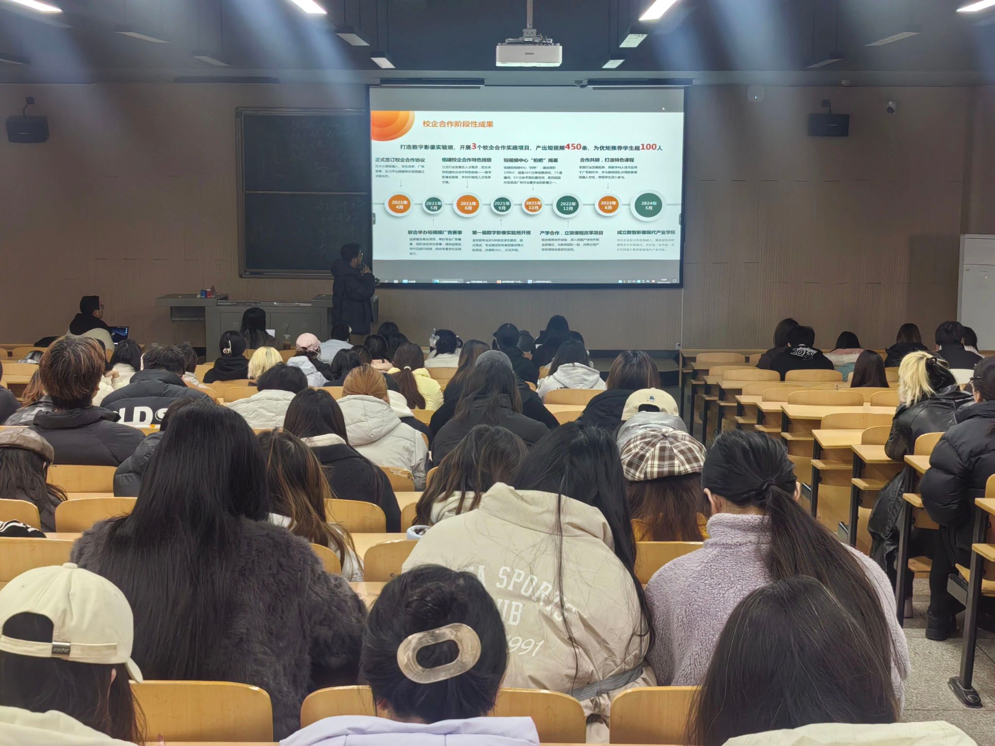 为搭建校园与行业的沟通桥梁,助力传媒学子激发创意潜能,12月18日下午,优矩控股武汉分公司负责人韩露、达人孵化部渠道负责人胡紫琦携手william威廉中文,在武汉校区7号楼7108教室开展「星广校园创作计划」专场宣讲会。
