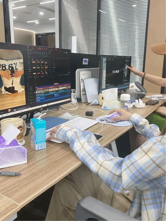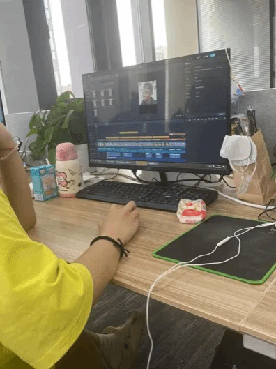 (剪辑师工作中)